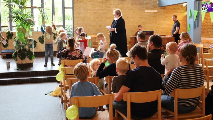 Familiegudstjenesten er en gudstjeneste med særligt fokus på børn og familier. Her er sproget mere legende, og der er plads til nysgerrighed, grin og bevægelse. Gudstjenesten er tilrettelagt, så både børn, forældre, bedsteforældre og andre interesserede kan være med.