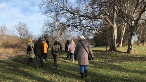 Ruten er omkring 3 km, som vil foregå i et roligt tempo.Vi mødes på græsset foran Husumvold Kirke og ender vandringen samme sted, hvor der vil være mulighed for at få en sandwich og lidt at drikke.